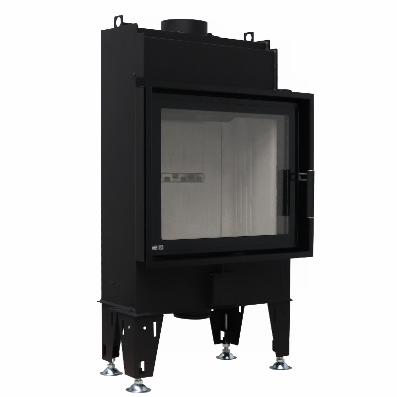 Innsatsen er produsert i robust stål og har brennkammer foret med lys ildfast stein. Dette forbedrer varmeakkumuleringen og gir bedre synlighet av flammene. Den store glassdøren er utstyrt med system for ren glassflate, som reduserer sot og gir klart innsyn til ilden over lengre tid.
