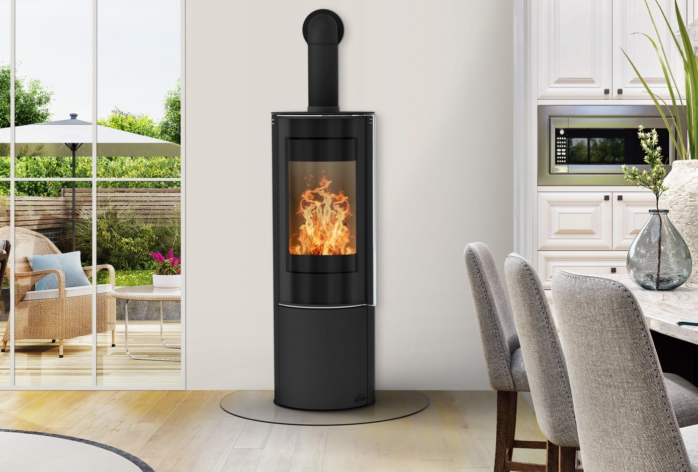 Den heldekkende glassdøren gir det moderne varmeapparatet et elegant utseende.
