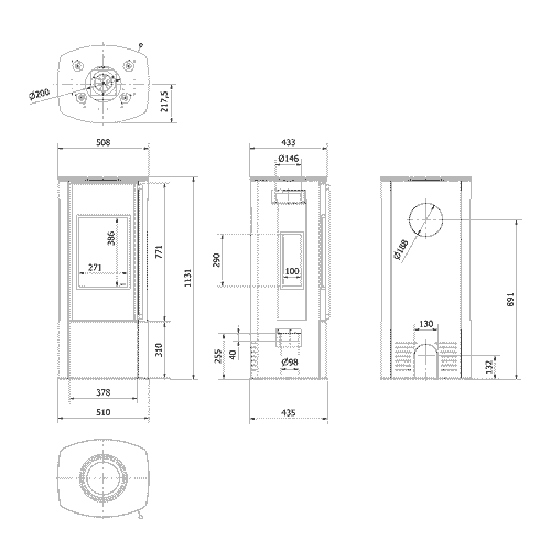 - Tresidig glass – et unikt syn på ilden forfra og fra sidene, noe som forbedrer den visuelle opplevelsen,