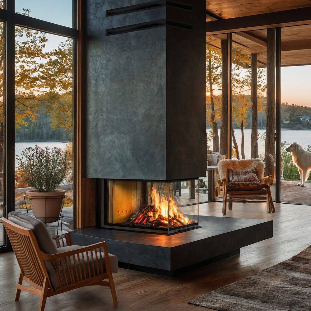 Peisen gir høy varmeeffekt, klart innsyn til flammene og et tidløst uttrykk som passer perfekt i moderne hjem.