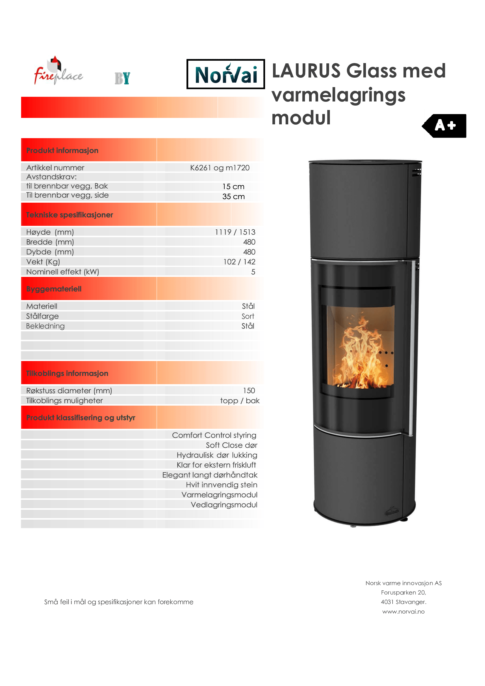 Døren på Laurus er utstyrt med et selvlukkende hydraulisk soft close-system, som elegant lukker døren og sikrer en god forsegling mot brennkammeret. Spjeldet ligger skjult under brennkammeret. Denne styringen sikrer optimal brenning og maksimal utnyttelse av veden du legger inn i brennkammeret. Du kan enkelt justere den til ønsket posisjon og deretter lene deg tilbake for å nyte varmen og flammene.