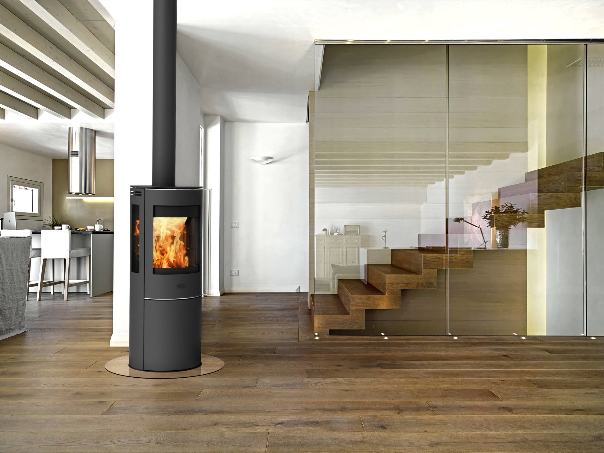 Magnolia er en elegant og harmonisk vedovn. Den er med glass på tre sider, noe som gir deg maksimalt innsyn til de levende flammene.Magnolia gir deg en moderne og eksklusiv atmosfære med de runde formene og sideglass.