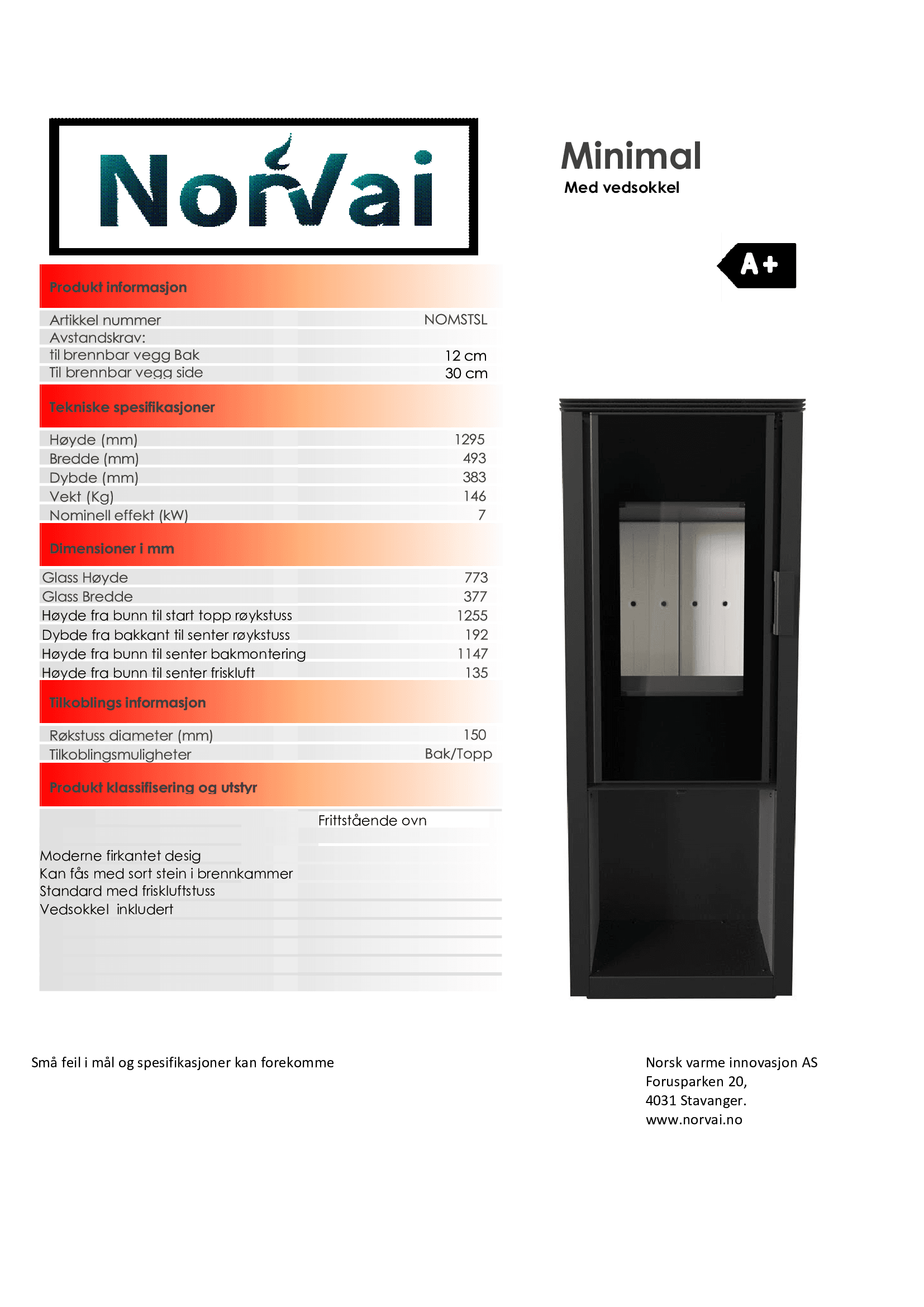Norvai frittstående ovner er nøye utformet for å passe inn i en rekke forskjellige hjem. Denne ovnsserien deler samme brennkammer, men skiller seg ut ved å tilby varierte sokler og dørtyper. Enten du foretrekker en enkel og diskret stil eller ønsker at ovnen skal være i sentrum, da gir Norvai deg valget. Du kan velge mellom ståldører for et klassisk uttrykk eller komplett glassdør for et mer moderne preg på ovnen. Hvis du ønsker å bryte med den tradisjonelle svarte ovnen, kan du til og med velge en ovn med flisdekor i ulike farger.