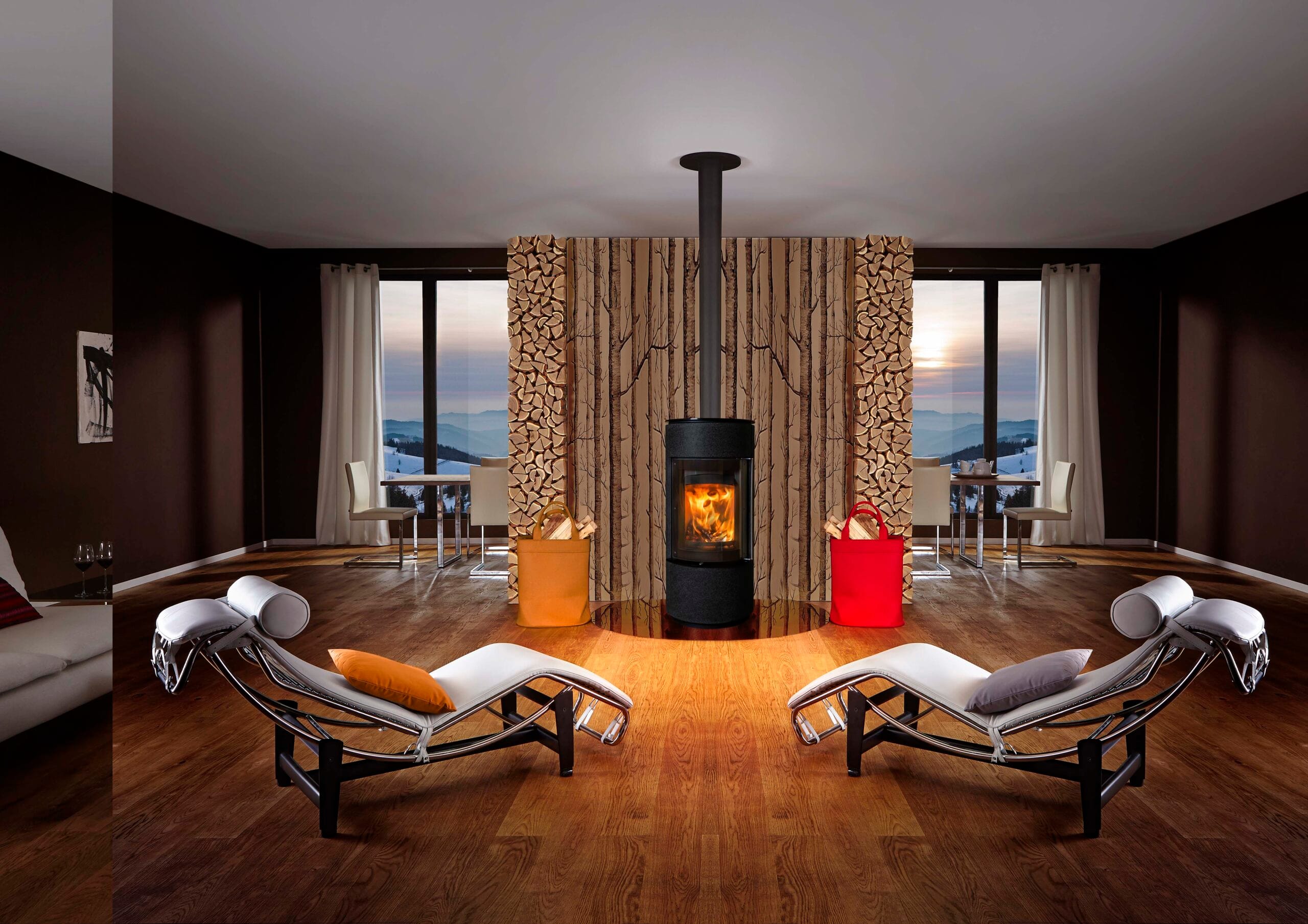 Dimensjoner på 123 (h) x 51,5 (b) x 51,5 (d) cm har Nimes-steinen et effektområde på 3–5,6 kW ved vedforbrenning og 5 kW