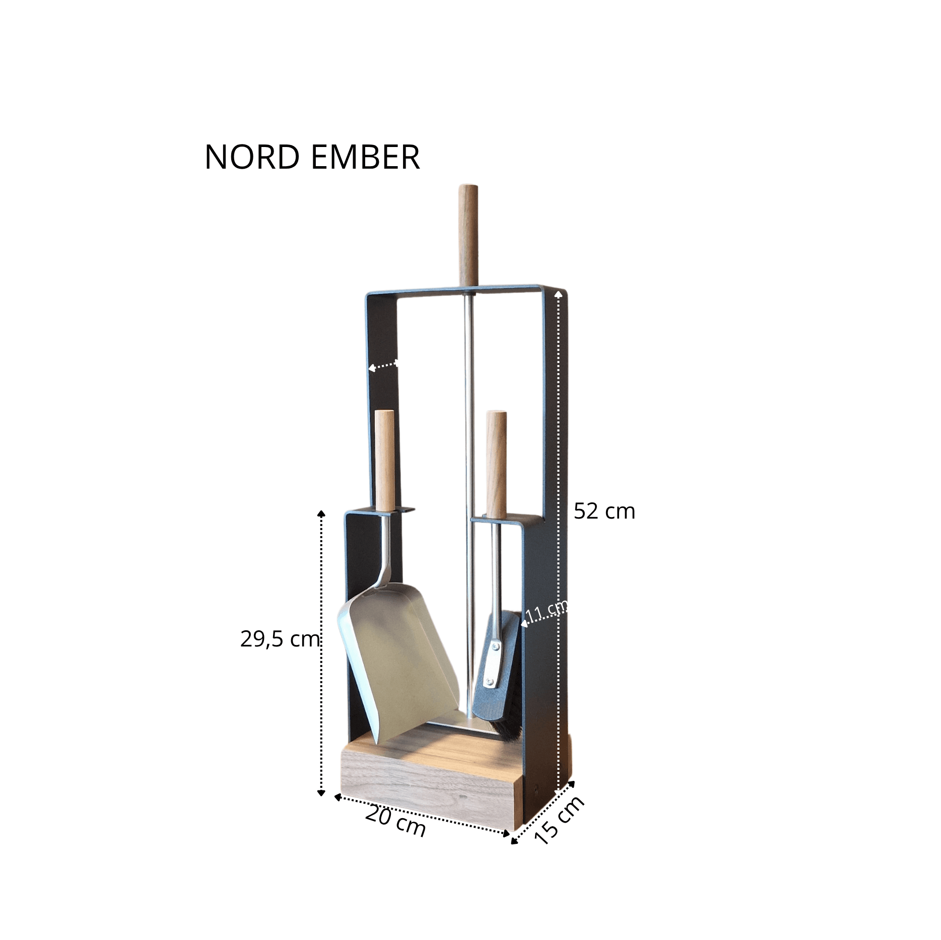 NORD EMBER er et stilrent og funksjonelt peissett som kombinerer moderne nordisk design med praktisk bruk i hverdagen. Settet er laget av robust stål og kompletteres med en elegant trebase som gir varme og naturlig uttrykk til interiøret.