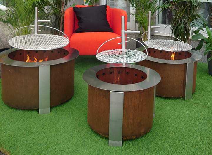 Det er veldig viktig at bålpannen ikke plasseres på brenn bart materiell.Grunnen er at bålpannene er laget for å gi både kos og varme.Bålpannene får da en høy temperatur også på nedsiden.Dersom den plasseres på treplatting må det lages til en trykk steinplate under hele bålpannen som er minimum 5 cm tykk, og gjerne løftet 2 cm opp, for å få lufting under, det kan også benyttes 2 lag med hageheller /betongstein med tykkelse på 4 cm.Det finnes mange produkter på markedet som skal gi en forlengelse av kvelden samt holde varmen i oss. Vi har produsert disse bålpannene i en kombinasjon av Corten stål og rustfritt stål. De leveres i 3 forskjellige størrelse 45,55 eler 60 cm i diameter . I tillegg til at det er en bålpanne, er den også rentbrennende! Det vil si at mye av røyken brennes bort.