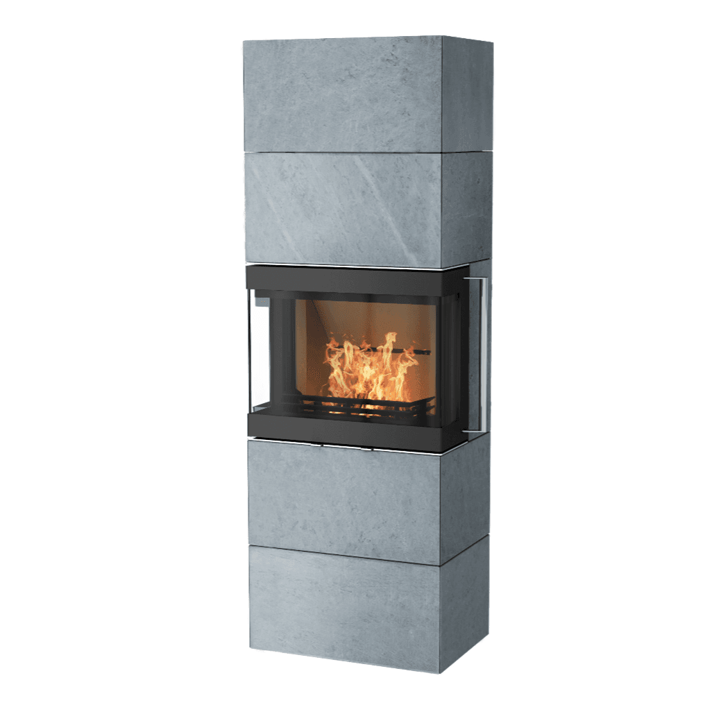 Santolini kleber skiller seg ut med sitt moderne utseende og imponerer med et ekstra bredt brennkammer. Den har et frontglass og to sideglass med et effektivt glassrengjøringssystem som sørger for klart innsyn i flammene. En kontinuerlig luftstrøm holder glasset rent og klart.