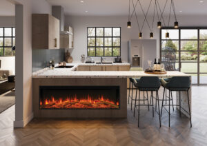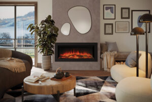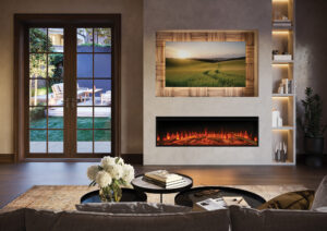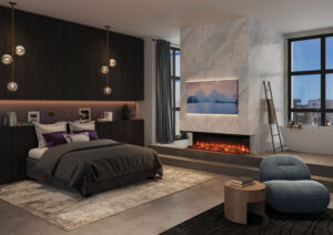 Vanligvis, ved installasjon av en elektrisk peis i en tradisjonell løsning som en medievegg, plasseres peisen først i åpningen, og deretter dekkes de synlige delene av konstruksjonen til. Avita leveres med en Edge+-ramme for ensidige installasjoner, som elegant skjuler mindre ujevnheter rundt åpningen og gir en ren, moderne finish.