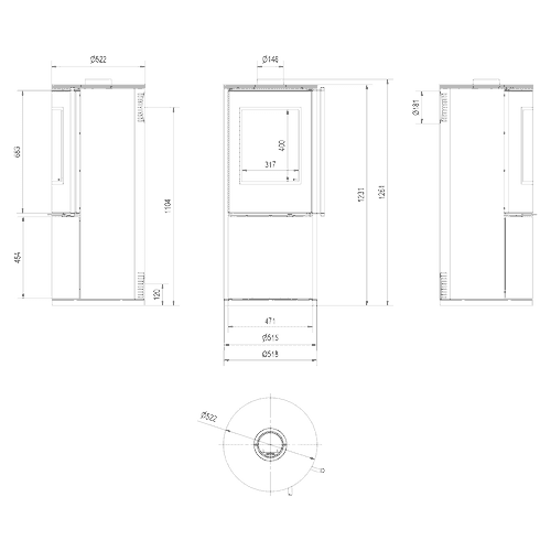 • Konstruksjon: Luftinntak, dekorativ glassdør, askeskuff, forbrenningskammer med innvendig fôr