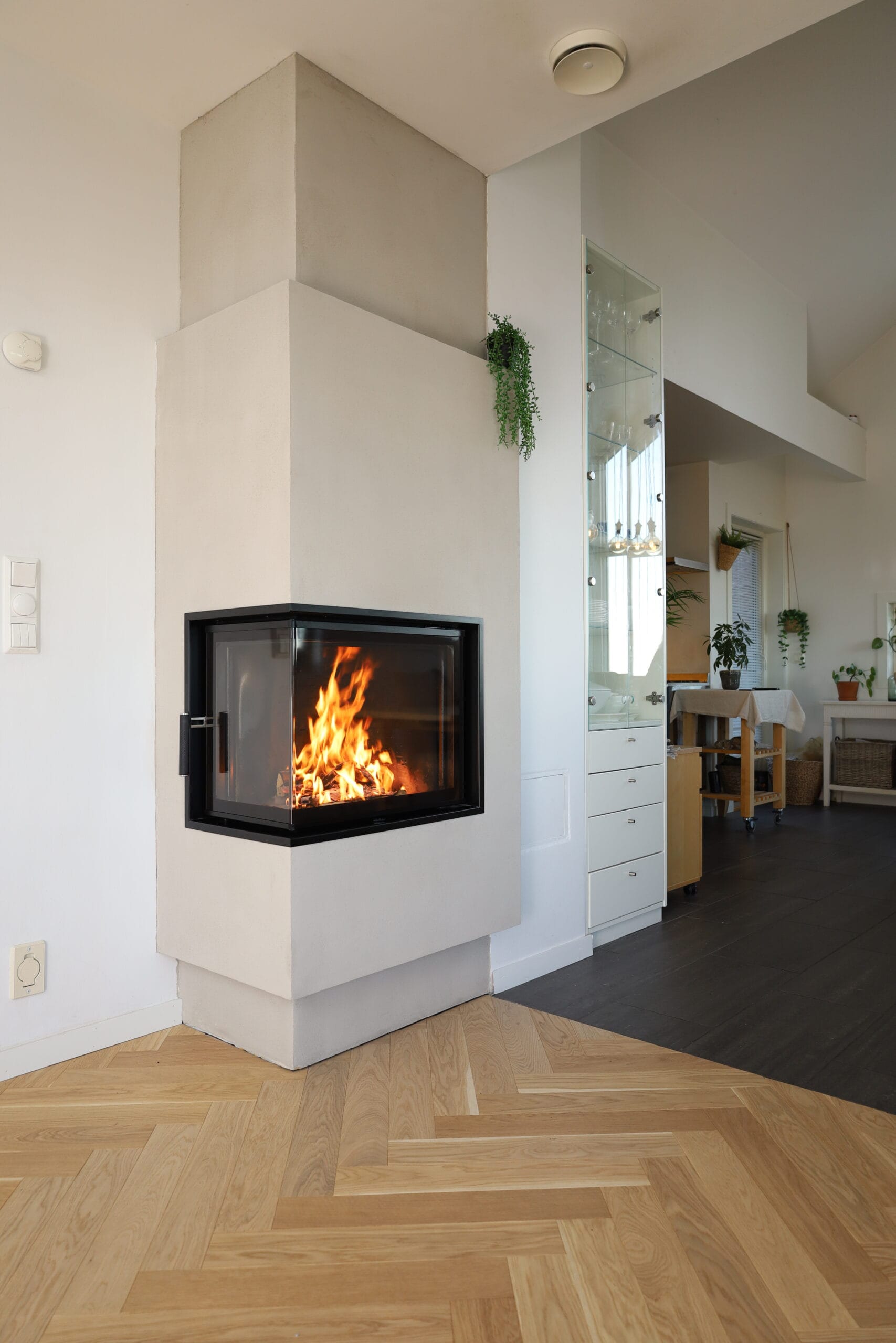 Det nye uttrekkssystemet på dørene sørger for at dørene åpnes enkelt og elegant, og fremfor alt en nesten lydløs åpning og lukking av dørene. Et sofistikert dørtrykk sikrer en perfekt tetthet i ovnen. Den innovative løsningen på luftspyling av glassene, gjør at glassene alltid er skinnende rent. Luften hentes inn til peisinnsatsen gjennom bakplaten i brennkammeret. Dette sikrer en høy lufttemperatur for glass spylingen og gir en saktere luftstrøm.