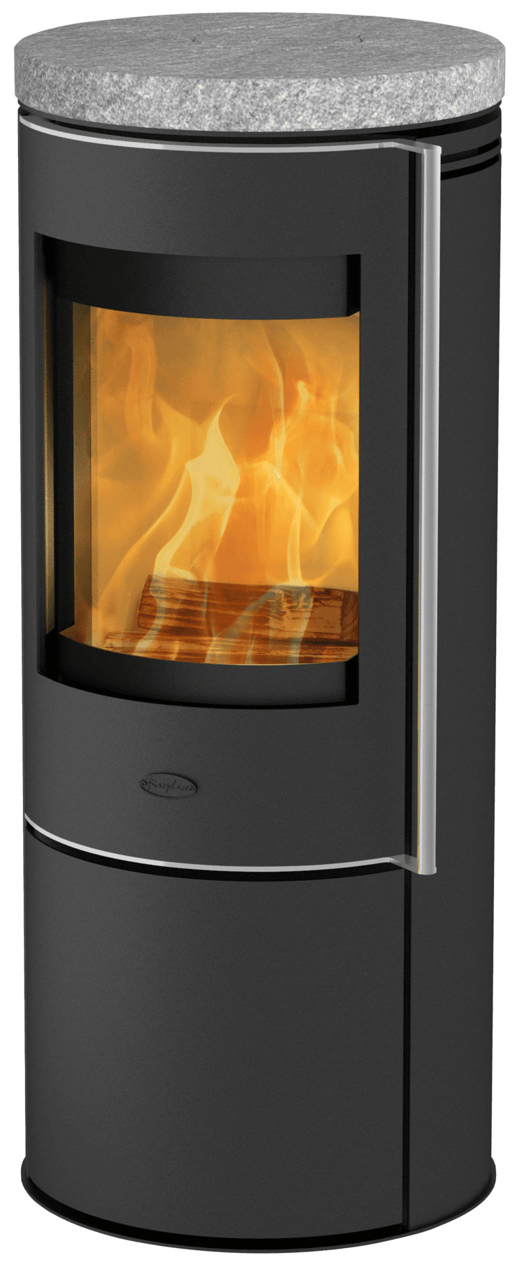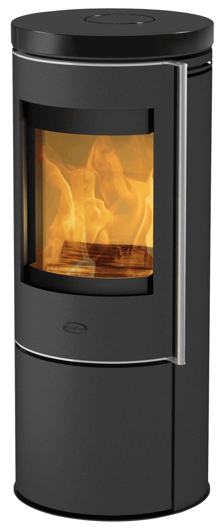 Det store, buede vinduet lar deg nyte flammene fra denne flotte ovnen.